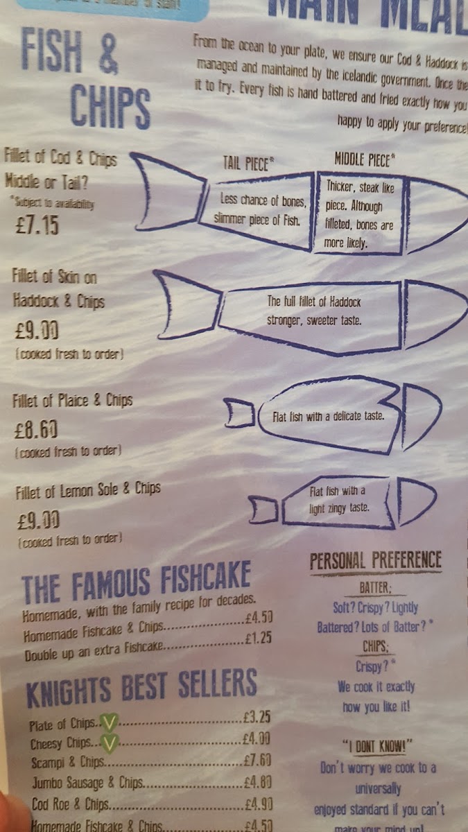 For those seeking variety, the menu includes tantalizing tarters like calamari and prawn cocktail, while vegan options, such as tofu 'fish', delight plant-based diners. A selection of beverages, including house ales and a curated wine list, complements the meals perfectly. Knight's is truly a must-visit for anyone craving traditional fish and chips in a warm, inviting atmosphere.